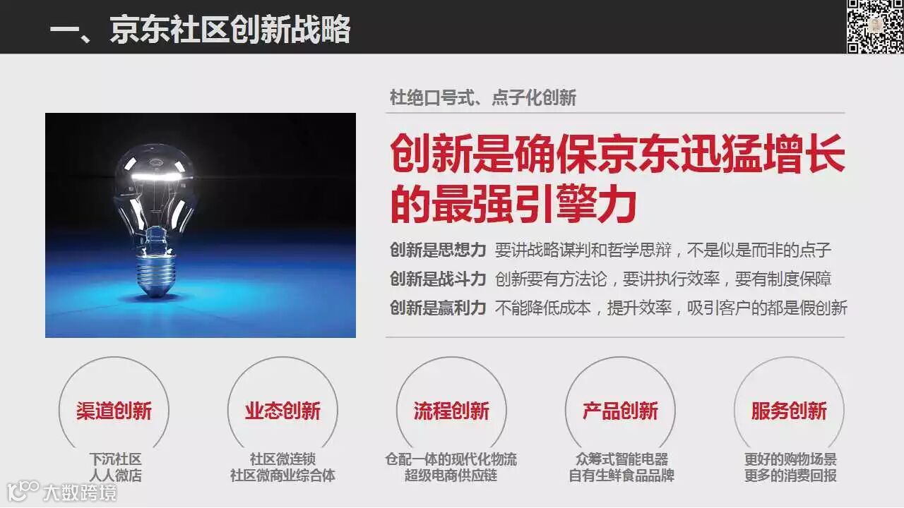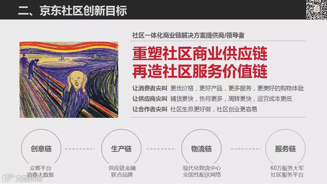那么,京东会如何做到呢?小编认为,未来京东的关键发力点,是基于物流下沉的大社区战略,确切地讲,就是说零售京东化,京东社区化。来源 虎嗅网