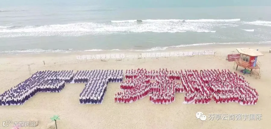 芬腾家居服挑战吉尼斯世界纪录荣誉现场,1879人的欢快呐喊声,震彻山河!听到了如此欢乐的声音,大海也忍不住,欢呼祝贺!