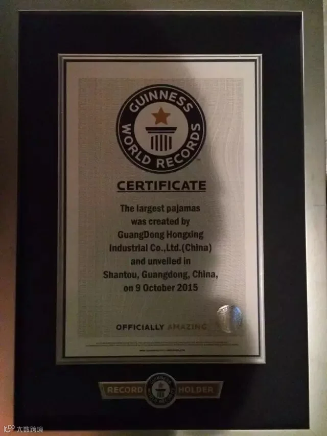 最大的睡衣 - 吉尼斯世界纪录荣誉