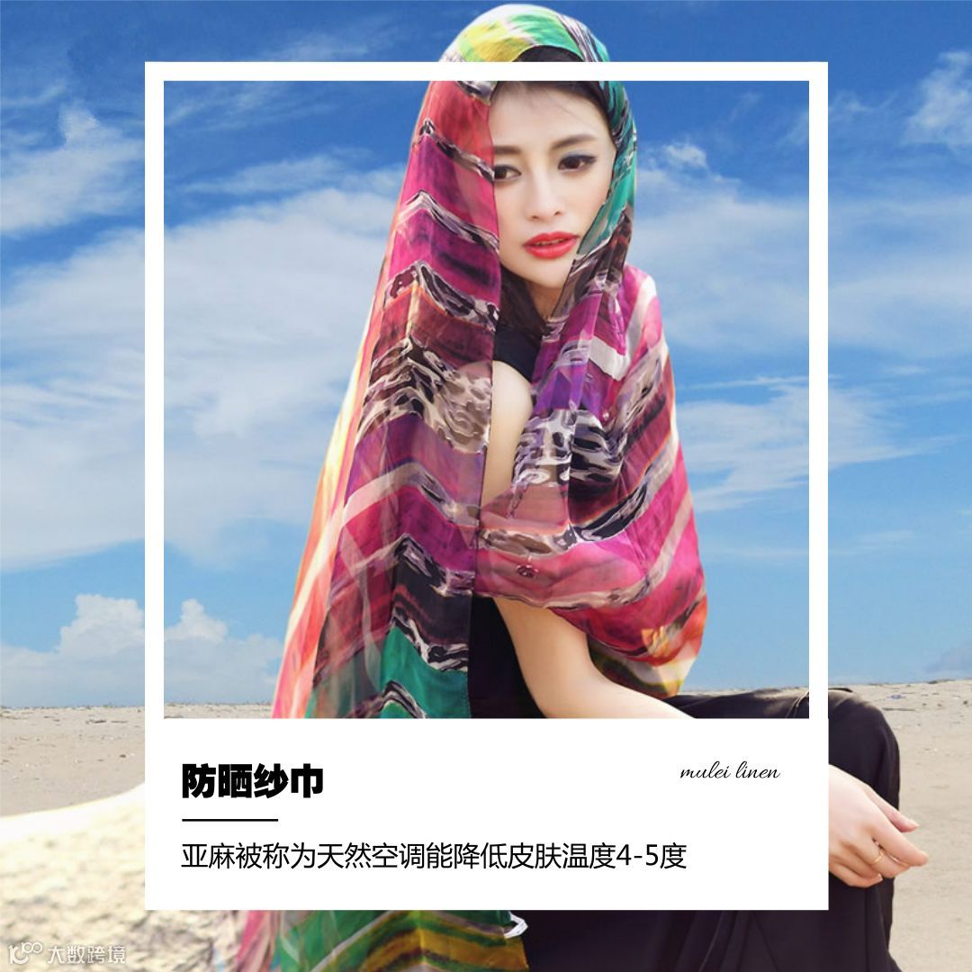 慕蕾的亚麻纱巾是经过严格挑选的,色彩斑斓,清凉透气,防过敏、防紫外线非常适合夏季使用,多种使用方法随心搭配。
