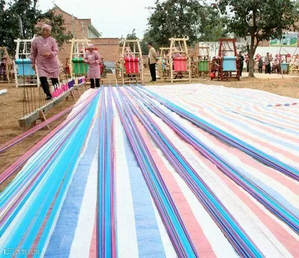 老粗布是奶奶辈当时的条件限制,没有技术也没有经济能力制造出更精细的布匹出来,只能手工纺纱织布,耗时耗力,且工艺繁杂,色彩、图案、手法都很单一,基本上都是纯色或简单的线条、几何图案