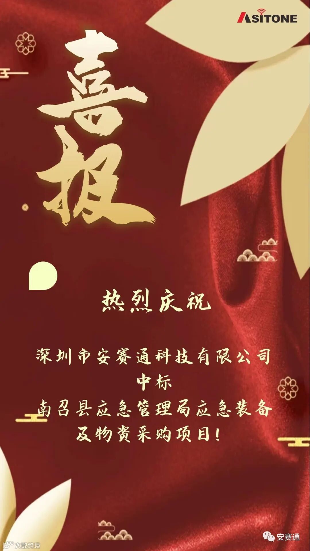恭喜深圳市安赛通科技有限公司中标南召县应急管理局应急装备及物资采购项目。