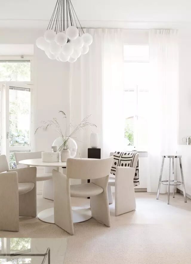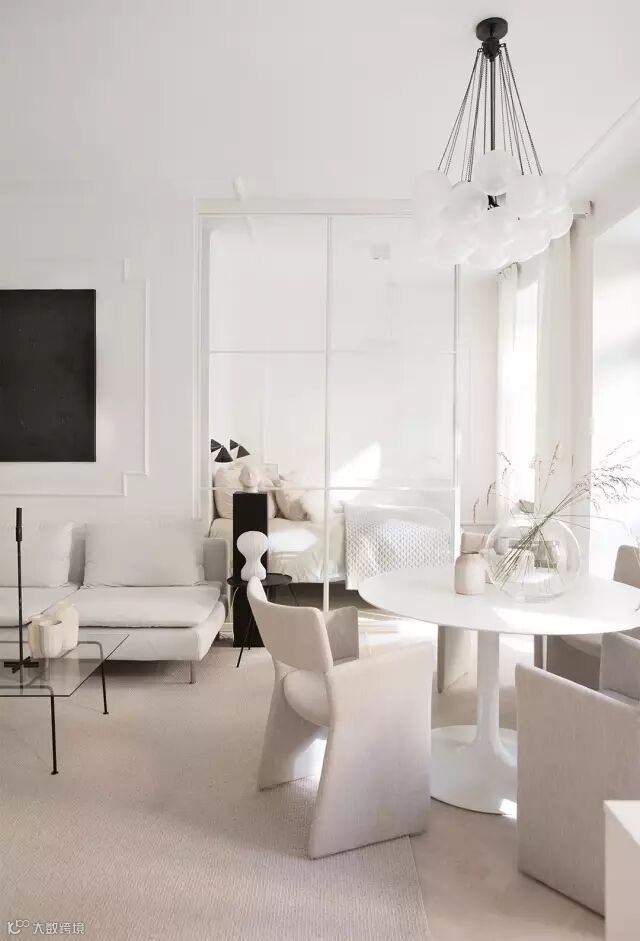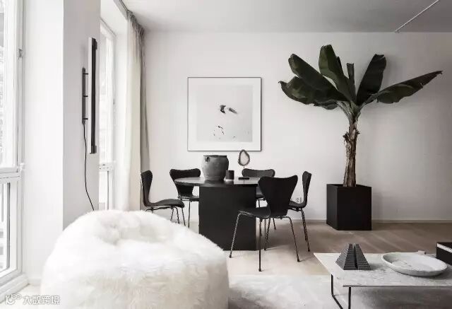 搭配三两绿植,在白色空间