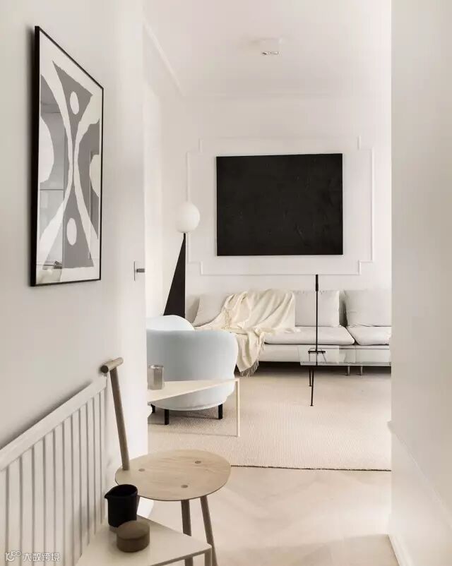 大白墙上用简单的画作来丰富空间