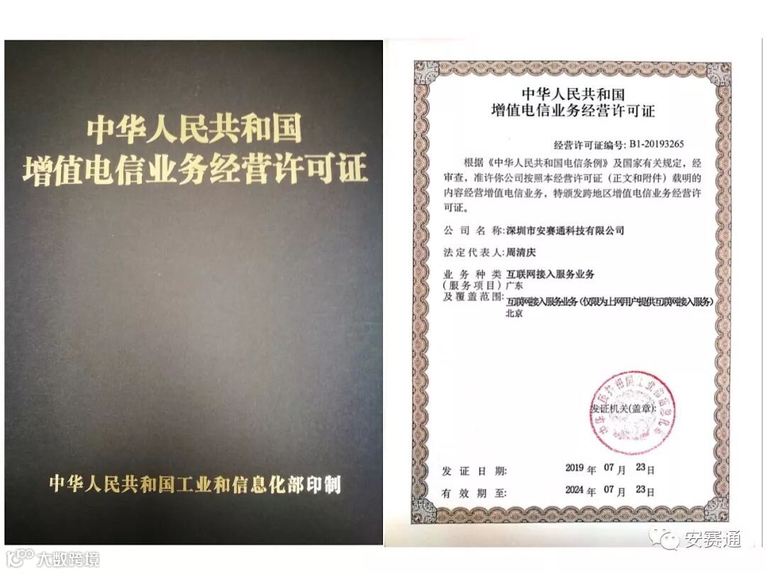 热烈祝贺深圳市安赛通科技有限公司取得中华人民共和国工业和信息化部颁发的《中华人民共和国增值电信业务经营许可证》。