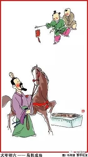 大年初六,马到成功。沥酒拜街中。万户千门看,无人不送穷。