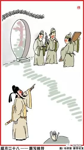 腊月二十八,打糕蒸馍贴花。古人以桃木为辟邪之木,后被红纸代替。