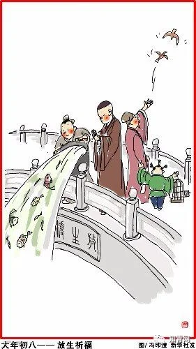 大年初八,放生祈福。众星下界之日,制小灯燃而祭之,一寸光阴一寸金。