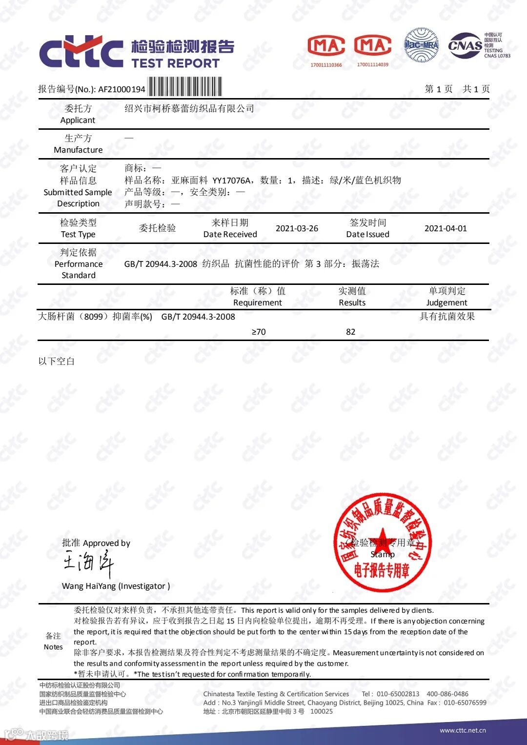 真实有效的检测报告最有说服力,亚麻的抑菌效果可不是说说而已哦