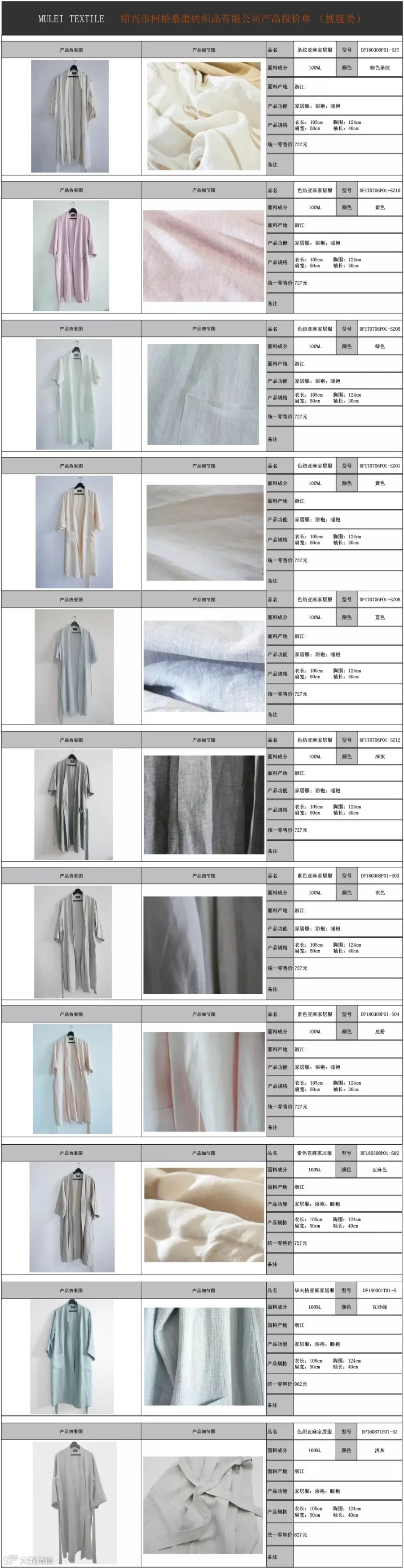 慕蕾亚麻家居服信息如下: