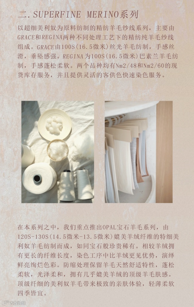 公司成立于2001年,是一家专业生产经营精纺、精半纺毛纺织品、针织品用纱的企业,拥有先进精纺设备15000纺锭,精半纺设备5000纺锭。主要生产经营:20-120公支,羊毛纱、羊绒纱、毛绒、丝绒等混纺纱。