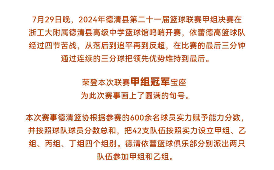 YILEI篮球|“冠军来自于团结与汗水。”