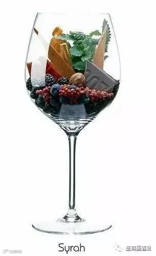 西拉葡萄品种: 蓝莓,黑莓,薄荷,小红莓,肉桂,肉豆蔻,黑巧克力,熏肉,烤面包,雪松。