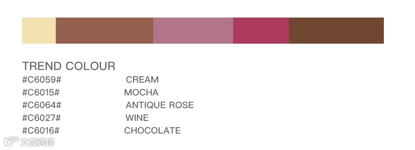奶油色,驼棕色与巧克力色,复古色系的组合营造稳定而温和的秋冬温馨氛围。果酱红与干玫瑰色,低饱和度的红色调为色组注入活力与些许趣味。冷暖兼容的跨季节色彩组合传递治愈人心的力量。