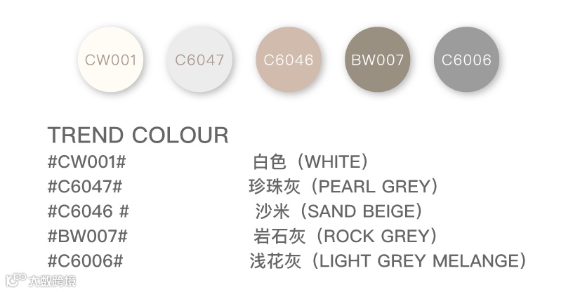 鳞次栉比的高楼大厦给色彩带来的深层启发,冷暖兼容的无色感色系形成温和而感性的中性色盘。