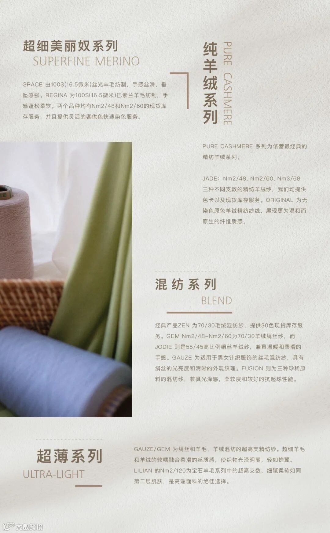 本次展会,YILEI带来经典系列产品JADE(精纺纯羊绒纱线色卡)、GRACE(精纺丝光羊毛纱线色卡)和ZEN(羊毛羊绒混纺纱线色卡)。全新推出的REGINA(精纺巴素兰羊毛纱线色卡)以及JODIE&GEM(绢丝羊绒混纺纱线分册)为满足客户多样化的需求,保留基础色的同时添加季节流行趋势色,展现纱线的魅力与能量,以色彩的主动性引发对纱线探索的渴望。