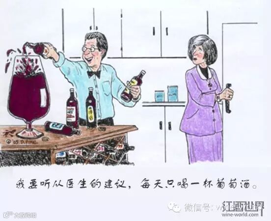 常常在电视里听到“劲酒虽好,可不要贪杯哦”的广告词,其实对于葡萄酒来说也一样,千万不可多喝,如果再酒后醉驾那更是害人害己。不过话虽如此,贪杯之人总有一些自己的“小聪明”。上图中的这位先生去看病,医生警告他说每天只能喝一杯酒,这位先生可真是听话得很啊!