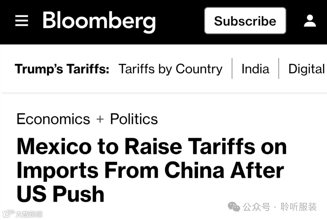 据彭博社报道,这一调整既是为了保护本国企业免受中国廉价商品的冲击,也是为了迎合特朗普政府的 “北美堡垒” 战略。