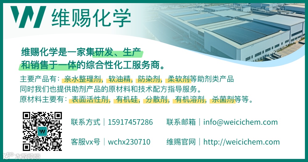 在全球纺织行业加速向绿色低碳转型的背景下,维赐化学将“环保”贯穿产品研发与生产全链路。本次展出的多款助剂产品,如低黄变软油精、聚醚改性软油精、亲水型嵌段硅油等,均符合国际环保标准,具备低VOCs、可生物降解、无有害残留等绿色属性。