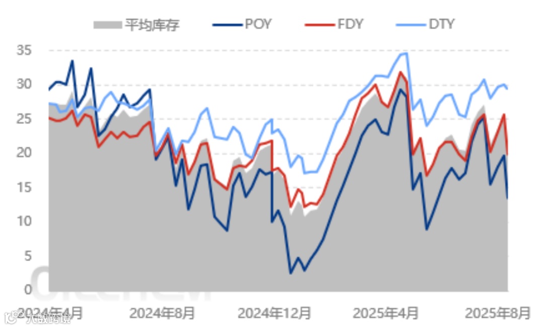 库存方面,上周四涤纶长丝生产企业平均库存在25天附近,环比增加1-2天。因周末产销集中放量,生产企业去库效果明显,平均库存在20天偏上,环比大幅下降。
