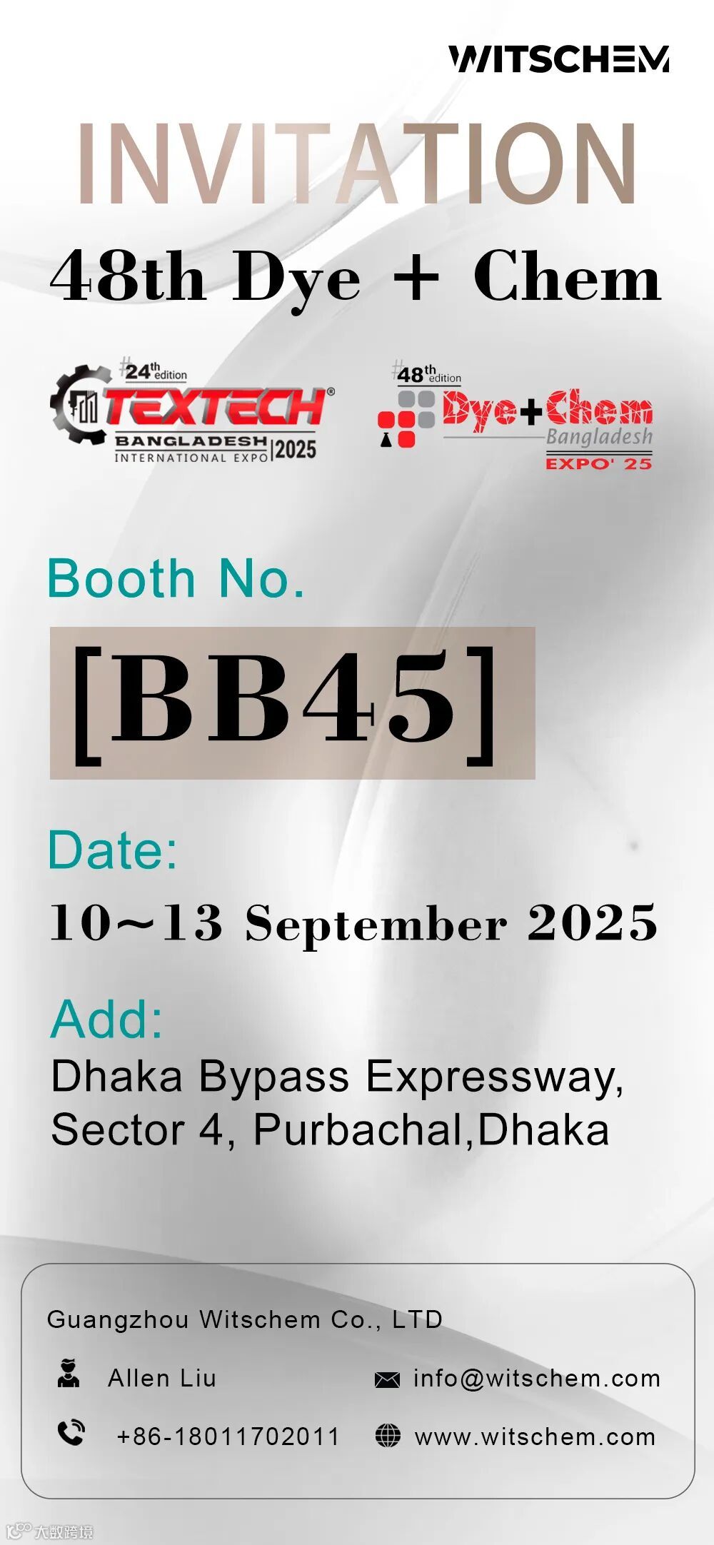 Guangzhou Witschem cordially invites you to visit us at [BB45]