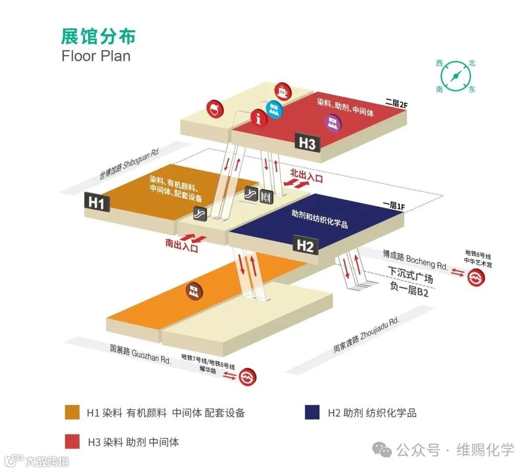 2025上海染料展对展厅布局进行优化升级,在原有H1、H2馆基础上,新增扩容H3馆,总展出面积达6万平方米,为新老参展企业提供更多元的展示空间。
