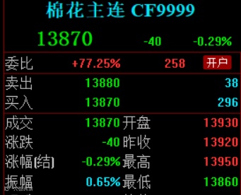 12月4日,郑棉出现较大幅度的下跌,CF2505合约一度跌至最低点13860元/吨,这是近两个多月以来的最低点,收13870元/吨,跌40元。
