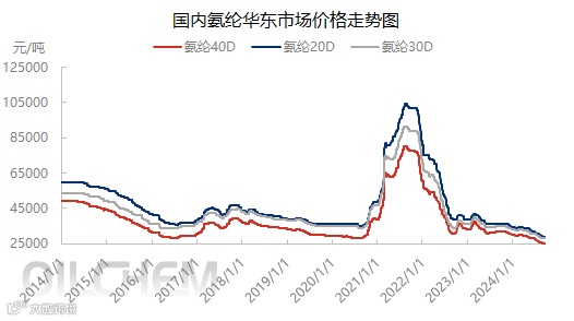 自 2021 年 9 月起氨纶价格出现大幅下滑,延续到2024 年以来价格长期处于震荡下滑,表现仍偏弱。中秋假期过后,国内氨纶市场延续平淡走势,此轮跌势行情已持续近一年之久。40D 氨纶价格截至 2024 年9月底为25000元/吨,同比下跌22%。比较2021年高点,下滑69%。当前行业现金流不断压缩,大多企业亏损,仅有少部分头部企业和差别化产品占比较高的企业有微小盈利。主因行业近两年投产高峰期,氨纶市场供应量增加,而下游纺织织造行业投产速度稍缓,下游供应增速不及上游,场内氨纶现货供应宽松,供需矛盾失衡加剧,业者信心偏弱,氨纶现货商谈重心逐步趋低。