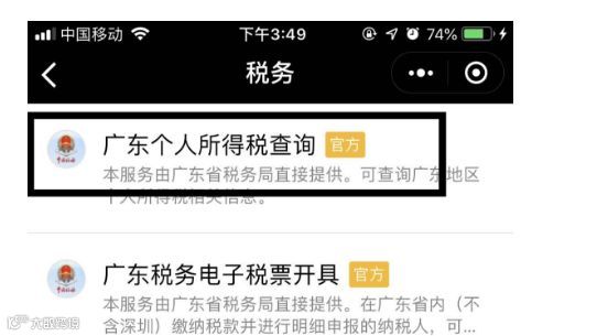 4.点击“税务“中的“广东个人所得税查询”