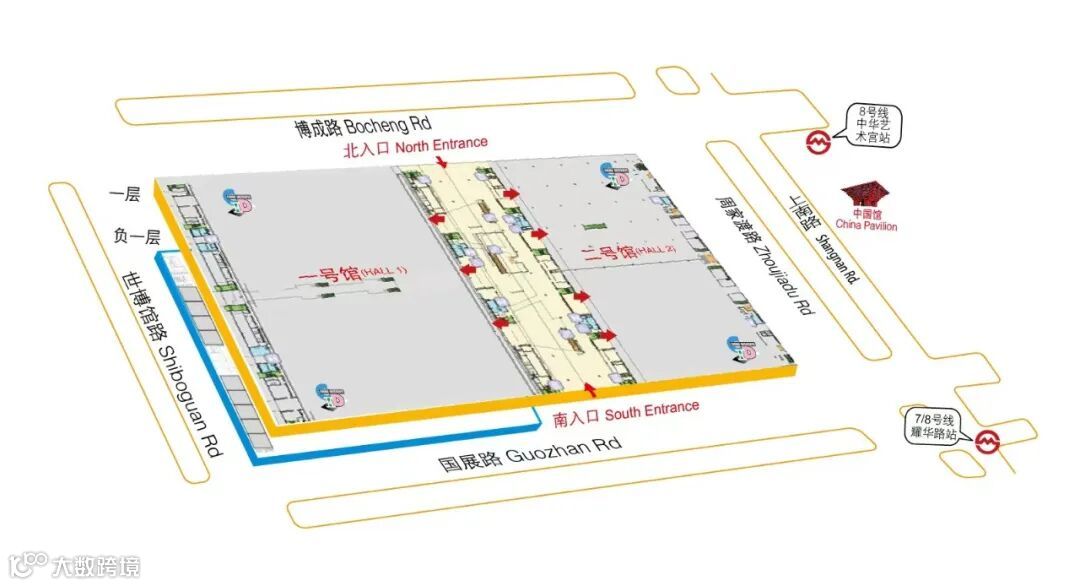Hall 4 is located in 1st Basement of Shanghai World Expo & Convention Center, visitors can directly enter the exhibition hall from the sunken square at the north gate.