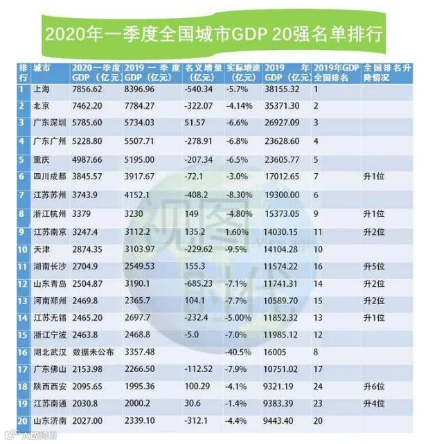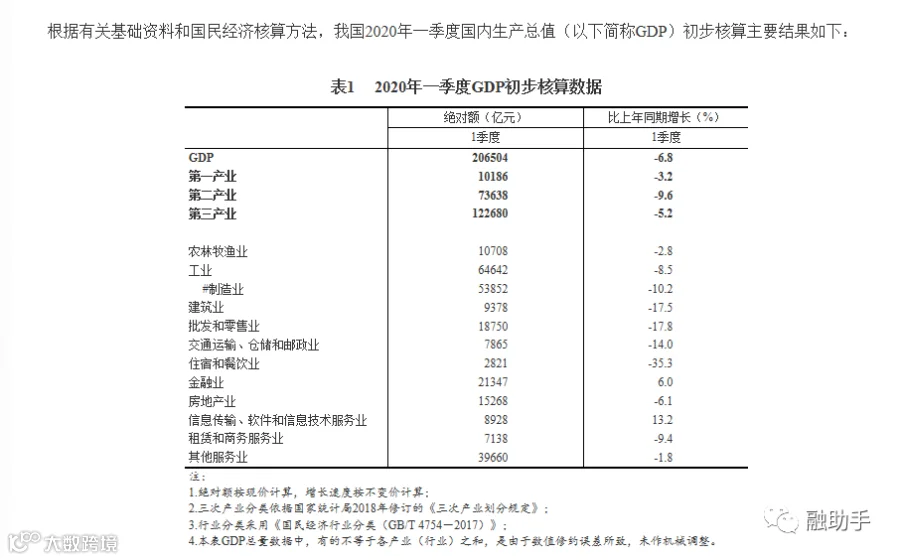 截至4月25日,国家公布了2020年一季度的GDP相关数据。
