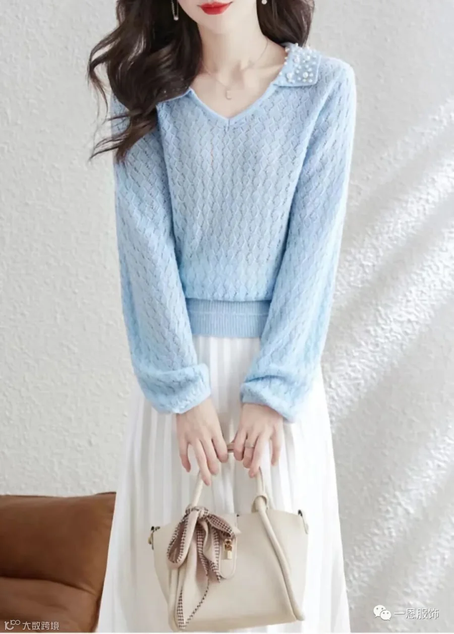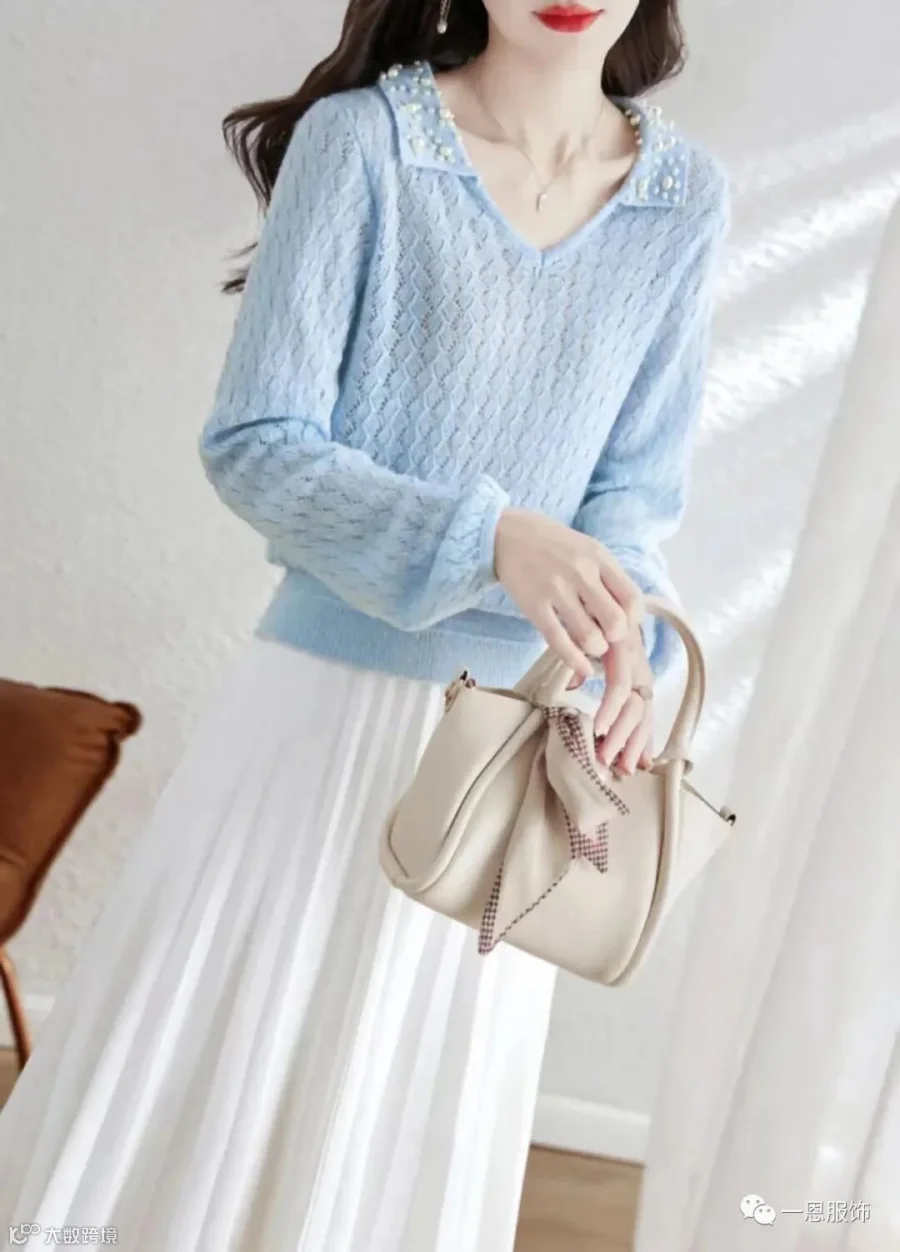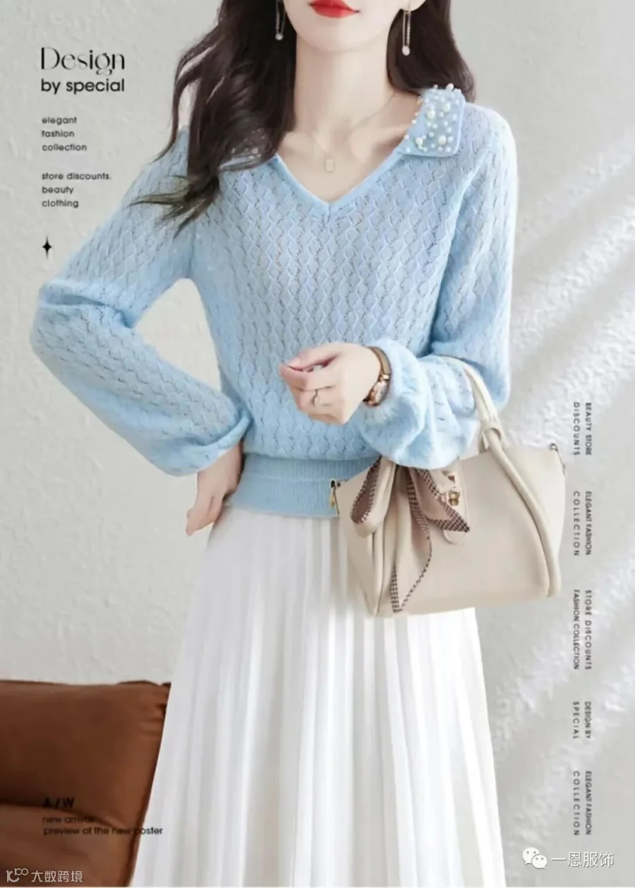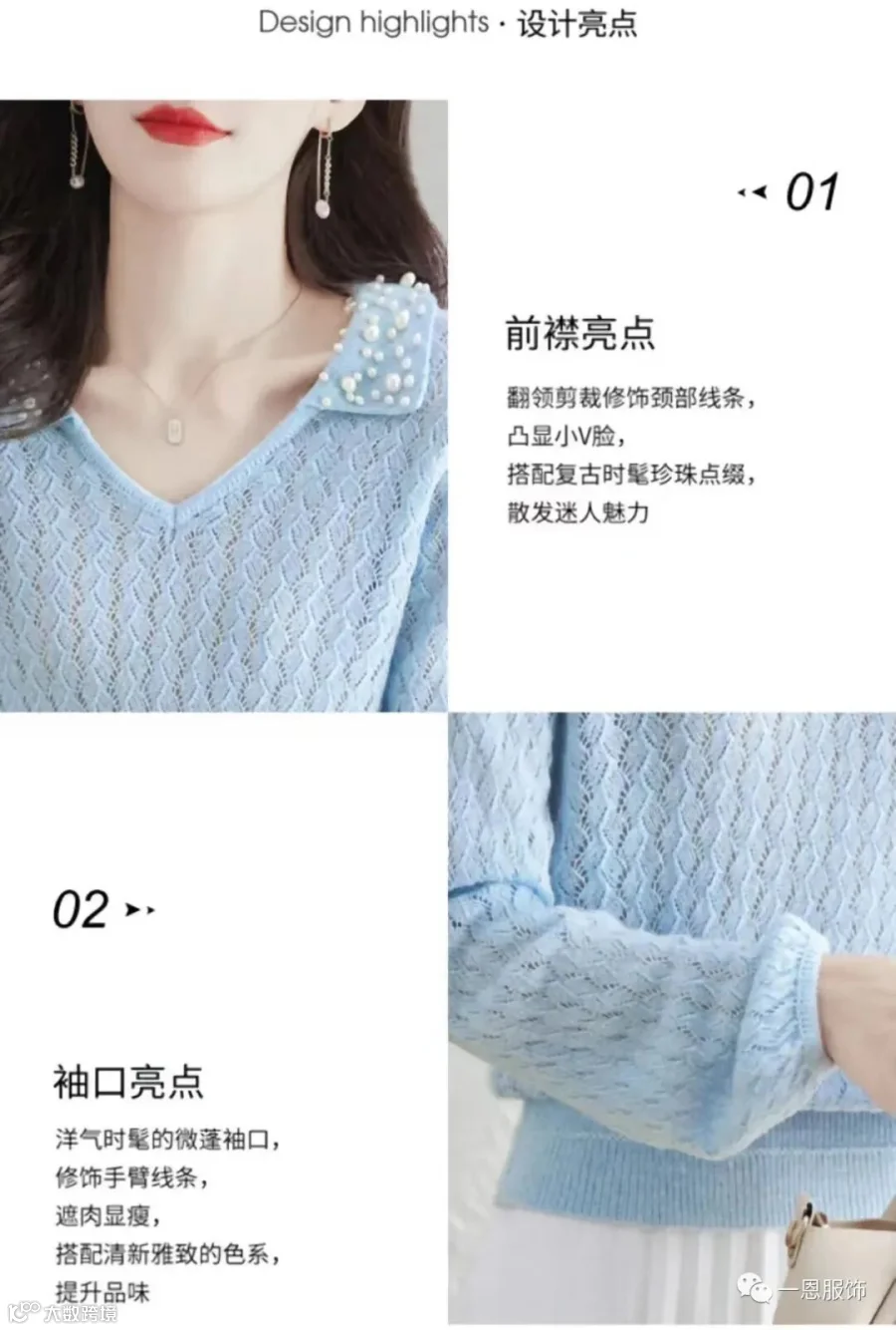 导读:【重工钉珠镂空针织衫】新款女士慵懒风气质收腰毛衣
