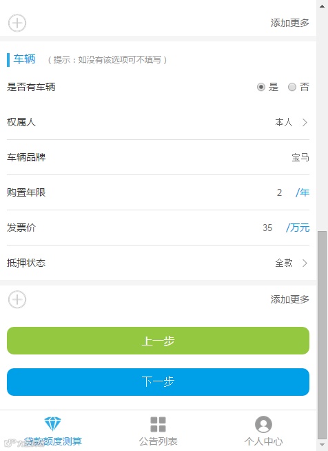 7、有多个房产和车辆的,点击“添加更多”按键