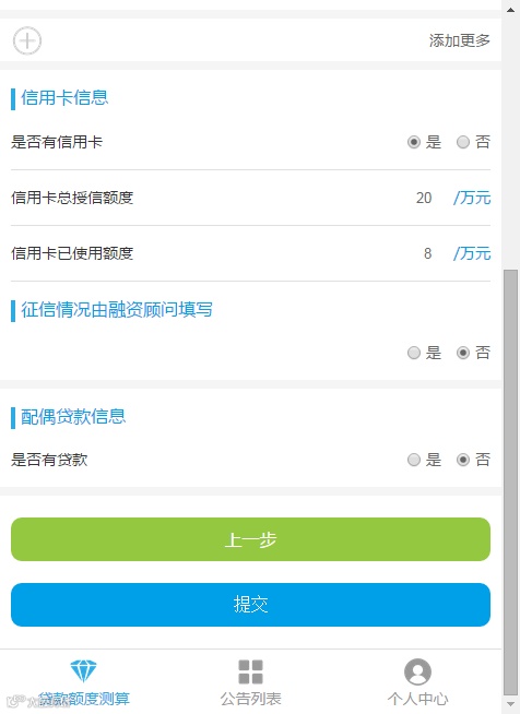 2、注意:征信情况由融资顾问填写,以免出错