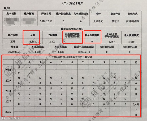 (3)信用卡不仅新增了5年的信用记录,还新增了余额、未出单的大额专项分期余额、剩余分期期数这几项。