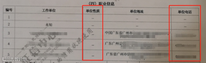 (2)职业信息:新版征信新增了单位性质和单位电话