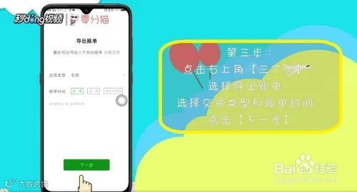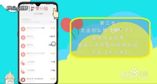 3、点击右上角的“…”,再点击“导出账单”
