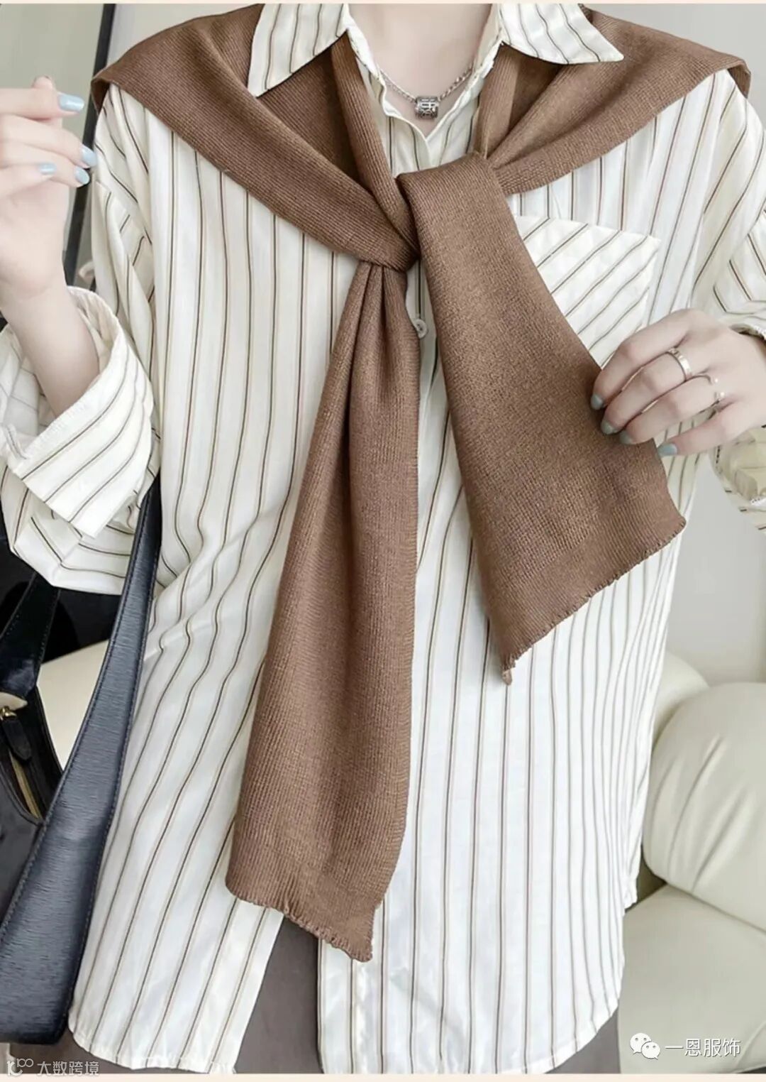 一恩 【时尚通勤女式衬衫】新款可拆卸披肩宽松长袖上衣女