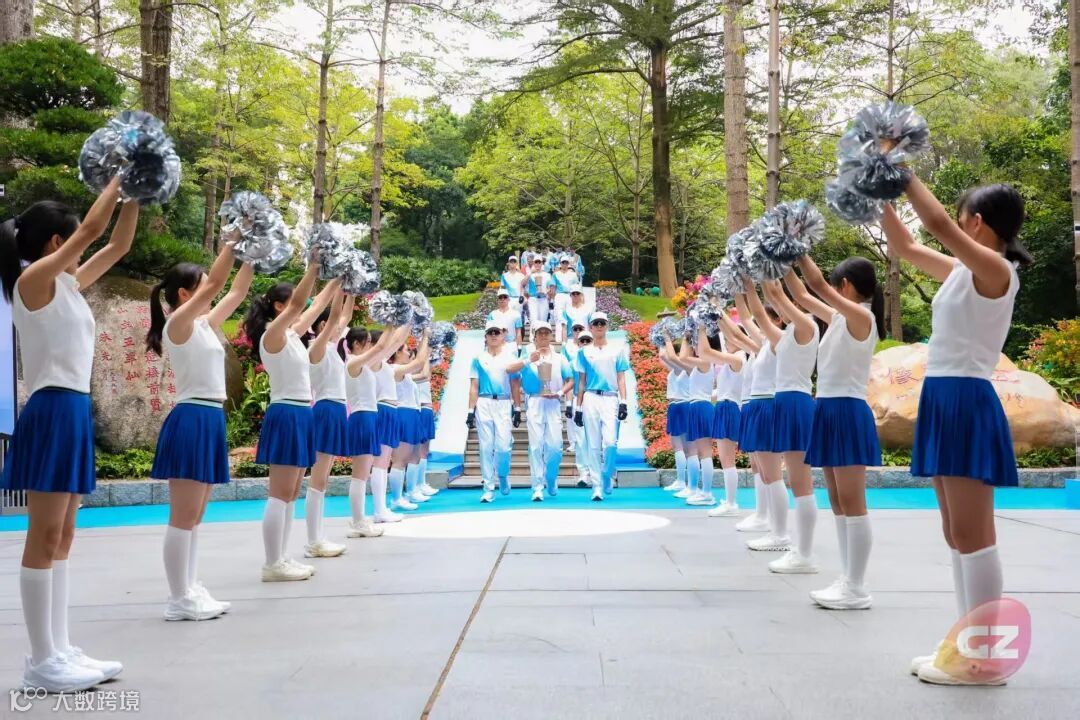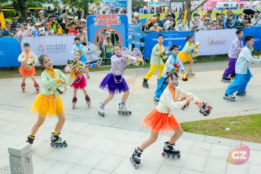 在二沙岛艺术公园,轮滑队员用流动的队形勾勒出速度与韵律的融合,展现出大湾区蓬勃的青春活力与科技动能。