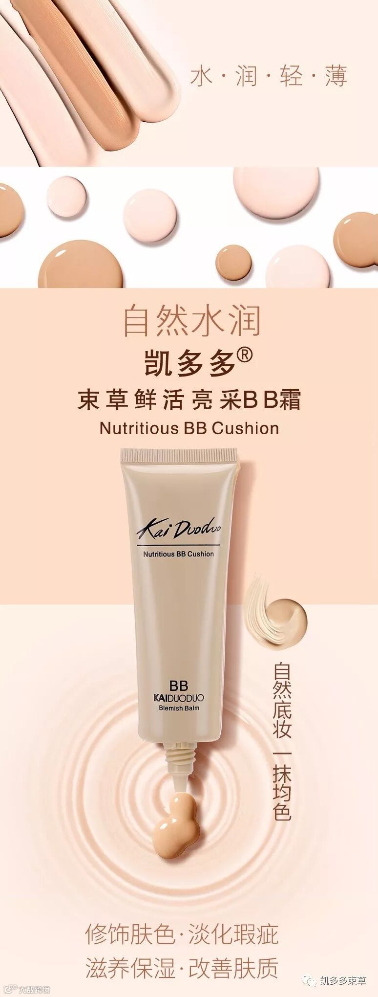 水润保湿:保湿滋养肌肤,锁住肌肤水分,滋养肌肤,妆感轻盈自然。