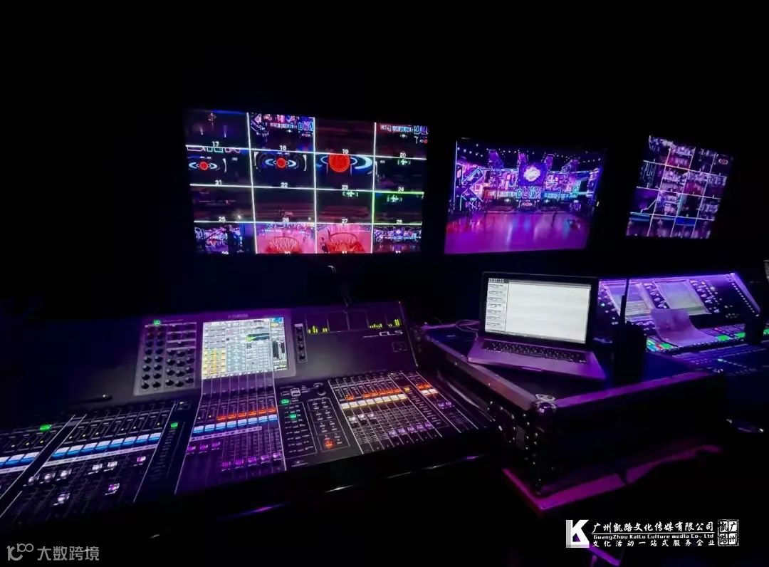 两组主音箱相距30米不影响主视觉并能覆盖观众,主音箱线材为了不影响舞美效果,8组音箱线都需要延长至100米并跨过舞台连接在后区功放组,为保证前区嘉宾能清晰聆听舞台演出,前区放置4只L.acousctics X15同轴音箱作为前区补音及声像处理,两侧看台各采用4只摆放L.acousctics K2线阵音箱覆盖。