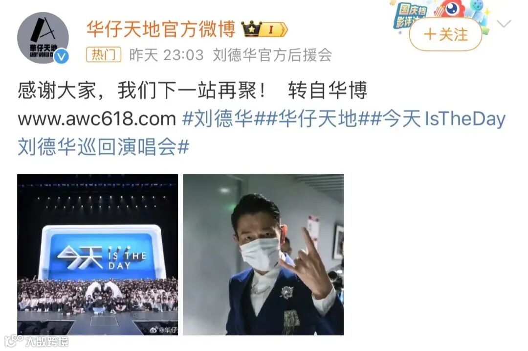 演唱会结束后刘德华在官网发照报平安:感谢大家,我们下一站再聚。