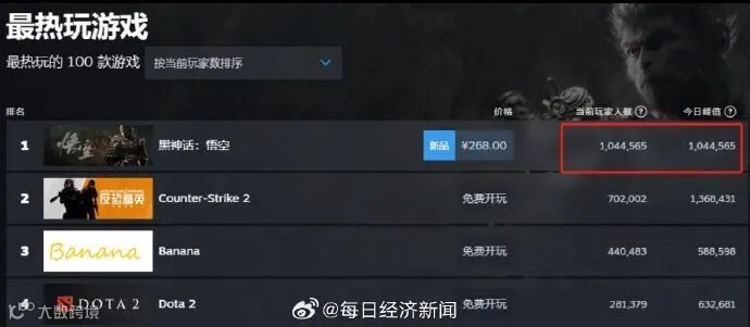 2024年8月20日,中国首款以《西游记》为背景的动作角色扮演的“3A”游戏《黑神话:悟空》正式在全球上线。在Steam平台的同时在线玩家达140万,荣登顶全球最大游戏发行平台Steam的全球热销榜。