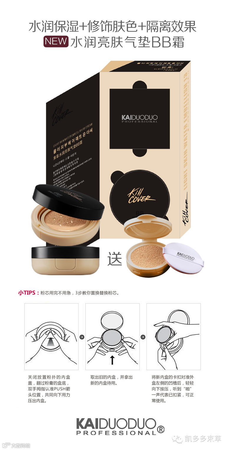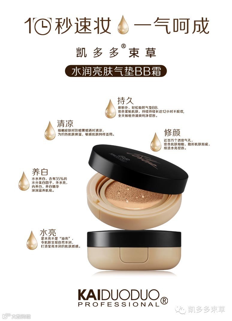 导读:广州市凯多多化妆品有限公司凯多多束草水润亮肤气垫BB霜
