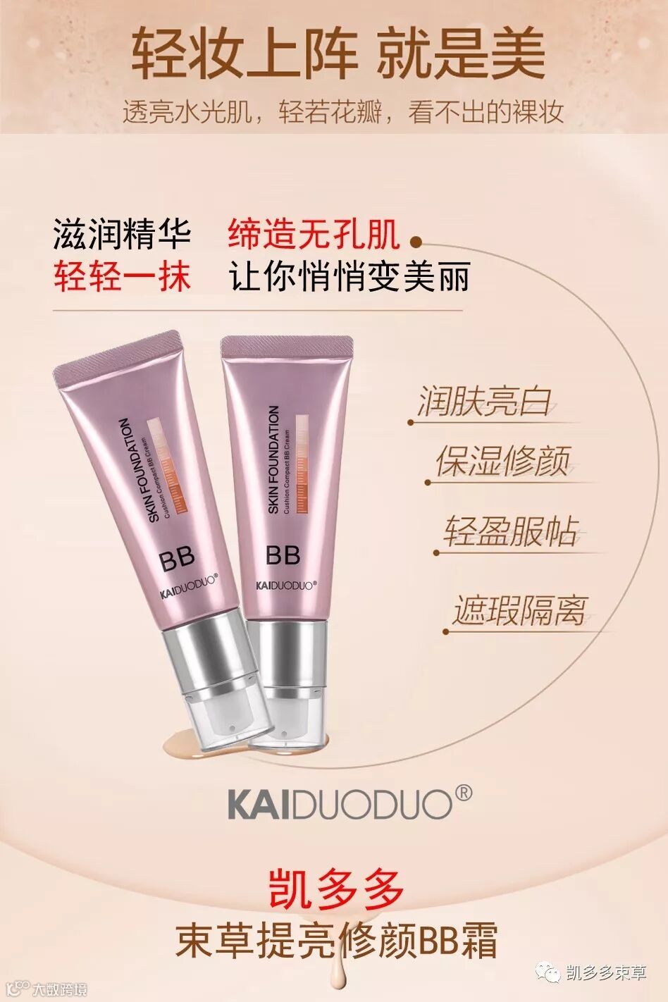 导读:凯多多束草提亮修颜BB霜