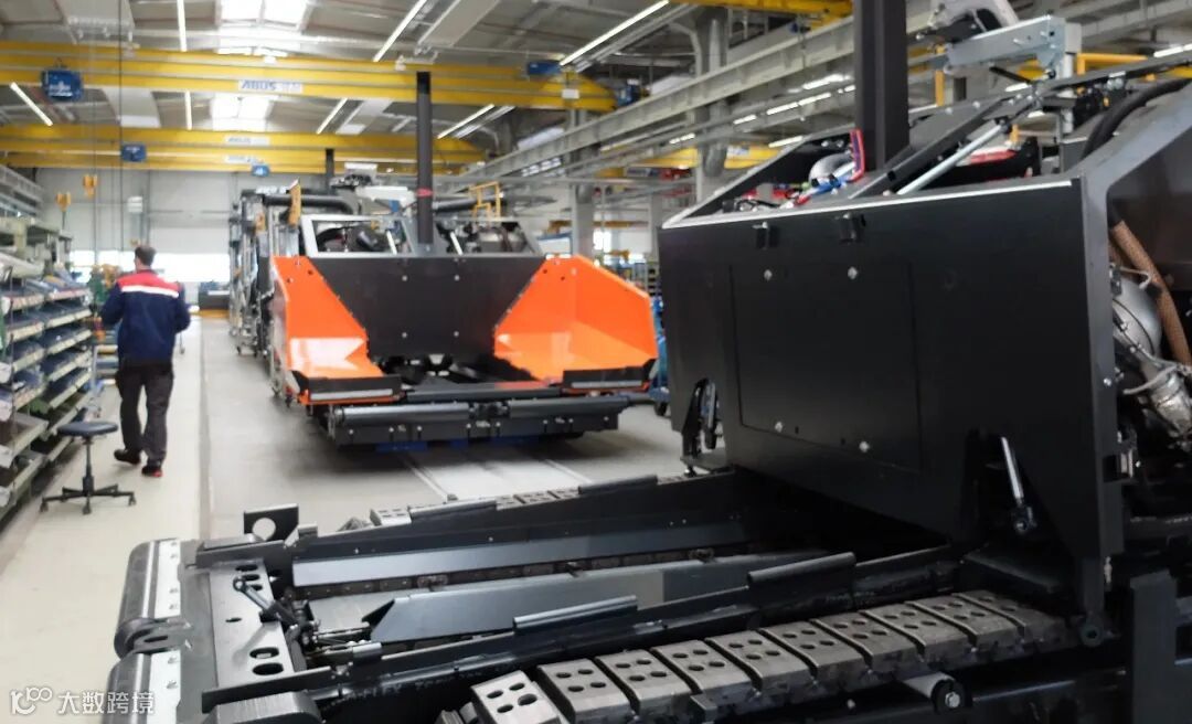 在生产环节,所有摊铺机在一条U型装配线上组装完成。转台可使机器在生产线上顺利推进,若某些机器需要等待特定的零部件,则被移至一侧,以保证其余产品继续生产。