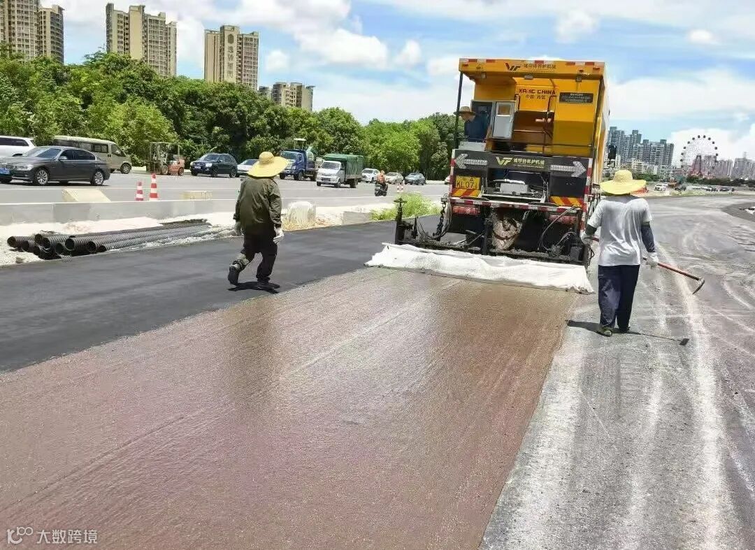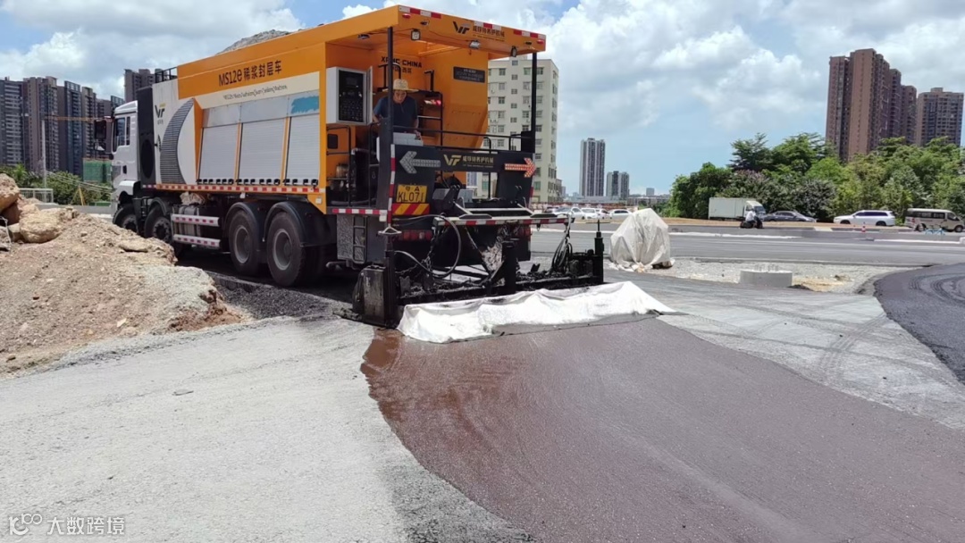盛夏时节,阳光炽烈,广东远沃团队奋战在中山坦洲大道一线,稀浆封层施工火热进行···