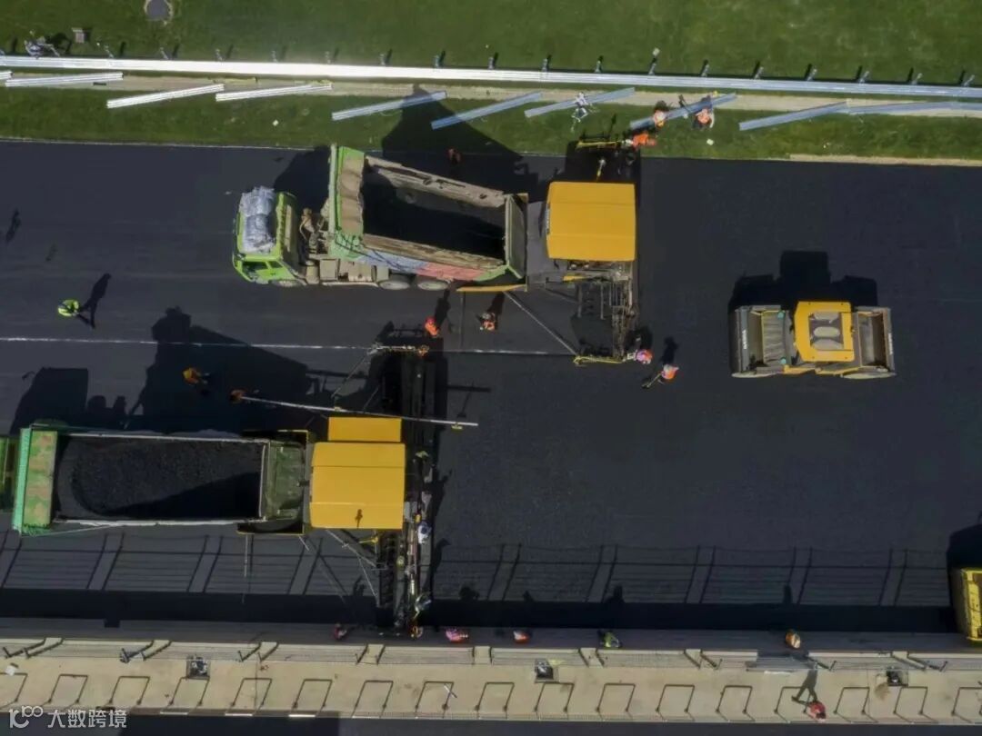 为确保赛道沥青摊铺工作,江苏沃至成选用沃尔沃P8820DL/P6820DL两款经典设备,配备天宝电子3D智能摊铺系统,在施工时能够实现项目中的路面平整度,满足摊铺设计的所有要求。不再需要传统的打桩挂线、架铝梁,摊铺机可以直接由自动跟踪全站仪进行引导,并且按照三维设计数据进行施工。在摊铺机后面,同时有测量人员用另一台自动跟踪机器人快速进行摊铺表面检查,保证摊铺精度满足工程要求。表面检查的原始数据可以直接同步到电脑上,进行存档。让此项目极大的减少了人力、工期,还确保了施工的优质、高效、精准。