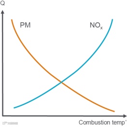 发动机高燃烧温度燃烧碳颗粒物 (PM) 但是产生氮氧化物 NOx。