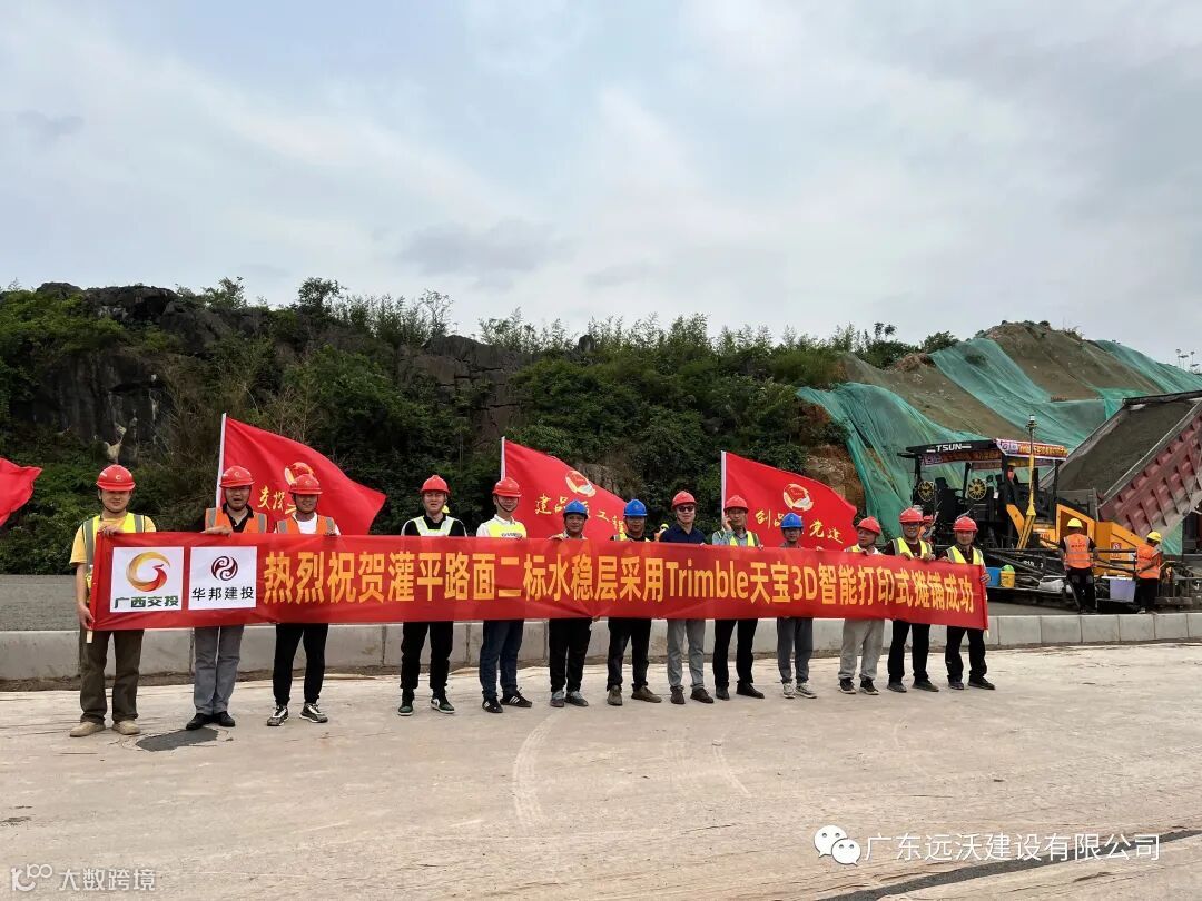 广东远沃建设有限公司4月13日,广州远沃携手天宝公司,服务华邦建投灌阳至平乐高速公路项目。水稳工作面长度800米、宽度12米、厚度21公分,通过对天宝3D智能摊铺施工技术的应用,不仅有效消除了“人为误差累积”,使设计标高与摊铺厚度和平整度达到完美统一;还减轻施工人员的工作量,施工人员仅需完成基础测量即可,进而收获了良好的施工效果。